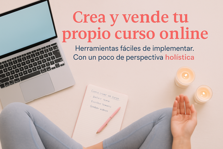 Curso grabado. Aprende a crear tu curso online desde cero y a venderlo, siguiendo un proceso práctico. Incluye herramientas holísticas para explorar la conexión con tu negocio, tu confianza personal y la energía del dinero. Además, recibe gratis el ebook '5 bloqueos espirituales en tu negocio."